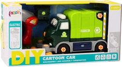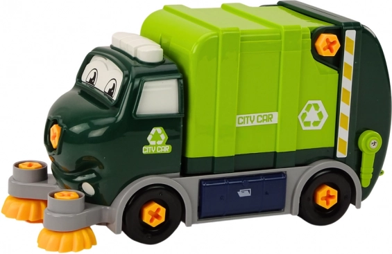 Ovaj crteni reciklažni kamion za DIY djeci omogućuje zaviriti u svijet strojeva i mehanike. Zahvaljujući sigurnoj dječjoj bušilici, odvijaču i izmjenjivim nastavcima djeca mogu automobil sama rastaviti i sastaviti, čime vježbaju finu motoriku, logičko razmišljanje i strpljenje. Prednje se četke tijekom vožnje okreću te zajedno s priloženom kantom stvaraju autentičnu simulaciju čišćenja ulica.