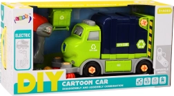 Zabavan i edukativan crtani kamion za smeće za sastavljanje za djecu od 3 godine. Uz priloženu električnu bušilicu i alate djeca sama rastavljaju i sastavljaju vozilo, razvijajući finu motoriku, logičko razmišljanje i kreativnost. U kompletu je i kanta za smeće te rotirajuće “četke” za realističnu igru čišćenja i recikliranja.