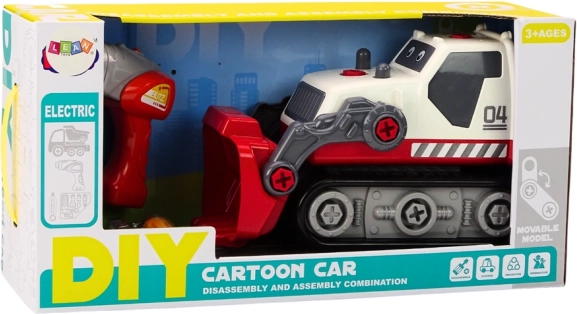U kompletu je bogat set alata: akumulatorska bušilica (na 3× AAA, nisu uključene), odvijač, ključ i 3 izmjenjiva nastavka. Djeca tako na siguran način istražuju kako je vozilo sastavljeno, uz razvoj manualnih vještina, logičkog razmišljanja i strpljenja. Igra nije samo zabavna nego i edukativna – vodi razumijevanju osnova konstrukcije i mehanike.