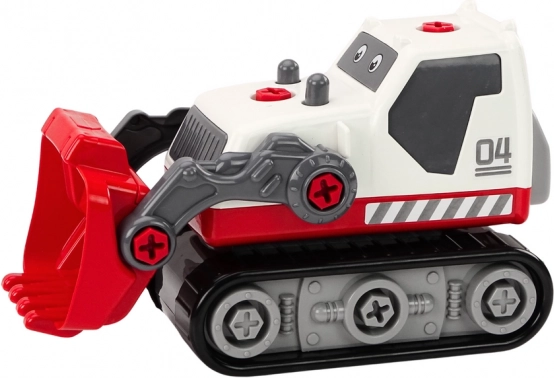 Ovaj ilustrirani gusjeničar bager sa širokom žlicom uvodi djecu u svijet tehnike i mehanike. Zahvaljujući pokretnoj i podesivoj žlici igra djeluje realistično, a djeca mogu oponašati prave građevinske radove. Robusna plastična izvedba u bijelo‑crvenoj boji atraktivna je i dovoljno izdržljiva za svakodnevnu igru.