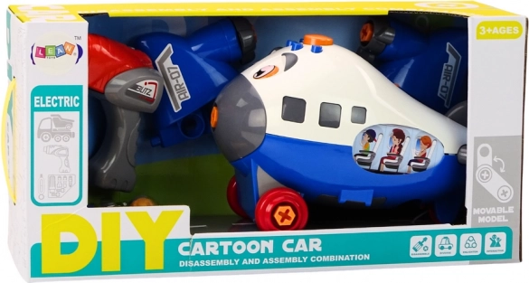 Zabavni crtani avion za sastavljanje u plavoj boji potiče male graditelje na istraživanje svijeta mehanike. U kompletu je dječja aku bušilica, odvijač i zamjenjivi nastavci, zahvaljujući kojima djeca mogu avion sama rastavljati i sastavljati, razvijati finu motoriku, logičko razmišljanje i kreativnost. Prikladno od 3 godine, s certifikatom CE i normom EN71.