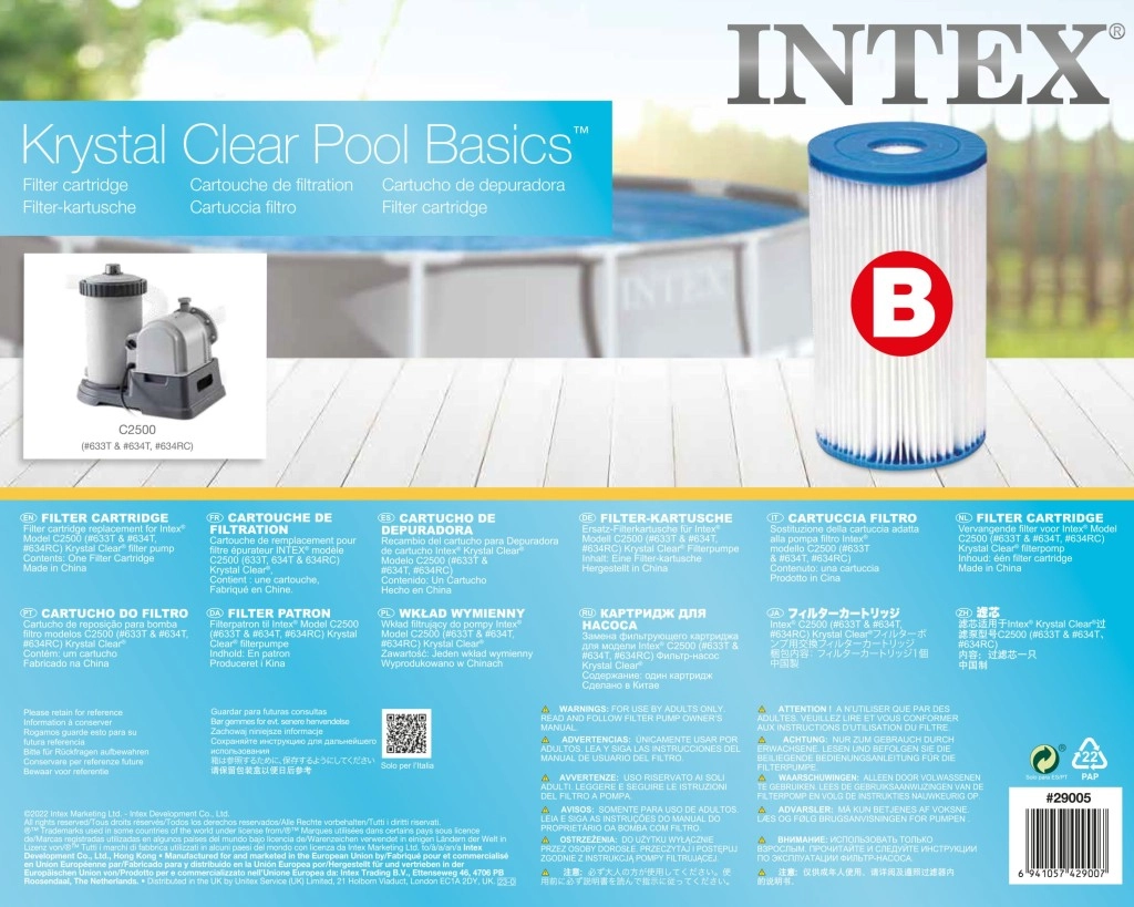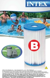 Prikladno za sve INTEX kartušne filtere s filtarskom kartušom tipa B. Uklanja sve nečistoće iz vaše bazenske vode. Riječ je o vrlo finom filtru za kristalno čistu vodu u bazenu. Preporučujemo zamjenu kartuše nakon 2–4 tjedna uporabe. Jednostavno održavanje ispiranjem mlazom vode.