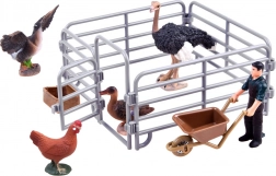 U pakiranju ćete pronaći upečatljivog noja, klasičnu dvorišnu perad – kokoš, gusku i patku, figuricu farmera s tačkama te elemente ograde za stvaranje vlastite mini farme. Zahvaljujući raznovrsnim dodacima, lako je slagati prizore i razvijati znanja o uzgoju životinja.