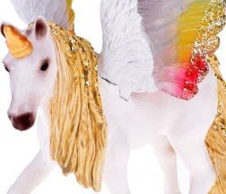 Očaravajuća figurica jednoroga Pegaza s duginim svjetlucavim krilima, zlatnom grivom i rogom oduševit će male i velike kolekcionare. Ručno je oslikana, izrađena od izdržljive plastike i izvrsna je za igru, kolekciju ili kao dekoracija dječje sobe.