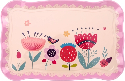 Dekorativni poslužavnik s cvjetnim motivima olakšava prenošenje i daje posluživanju pravi kavanarski štih.