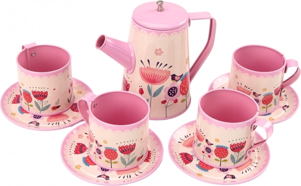 Preslatki dječji čajni set od metala u ružičastoj boji razveselit će sve male domaćice i domaćine. Sadrži sve potrebno za igru kavane: poslužavnik, čajnik, šalice i tanjuriće. Zahvaljujući čvrstom materijalu set je izdržljiv i siguran za djecu od 3 godine. Šareni cvjetni motivi i praktični detalji pretvaraju svaku igru u veselu i realistično doživljenu zabavu koja razvija maštu i socijalne vještine.