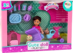 Ovaj šareni set sadrži lutku s dugom smeđom kosom u ružičasto-plavoj odjeći, dva preslatka psića, ružičastu kućicu, kolica i niz dodataka za svakodnevnu njegu. Zahvaljujući brojnim scenarijima djeca uvježbavaju odgovornost i razvijaju komunikacijske vještine.