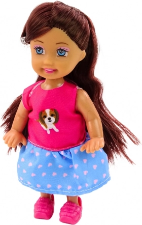 Lutka s dugom smeđom kosom, u ružičasto-plavoj odjeći i ružičastim cipelama, lako oživljava svaku priču.