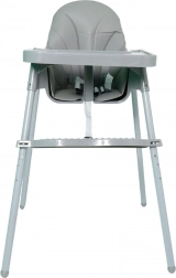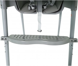 Robusne, široko razmaknute noge i protuklizna podnožna podloga osiguravaju stabilnost na raznim podlogama. Višetočkovni sigurnosni pojasevi drže dijete čvrsto i udobno pričvršćenim. Glatke plastične površine i izvadivi pladanj omogućuju brzo čišćenje nakon svakog obroka.