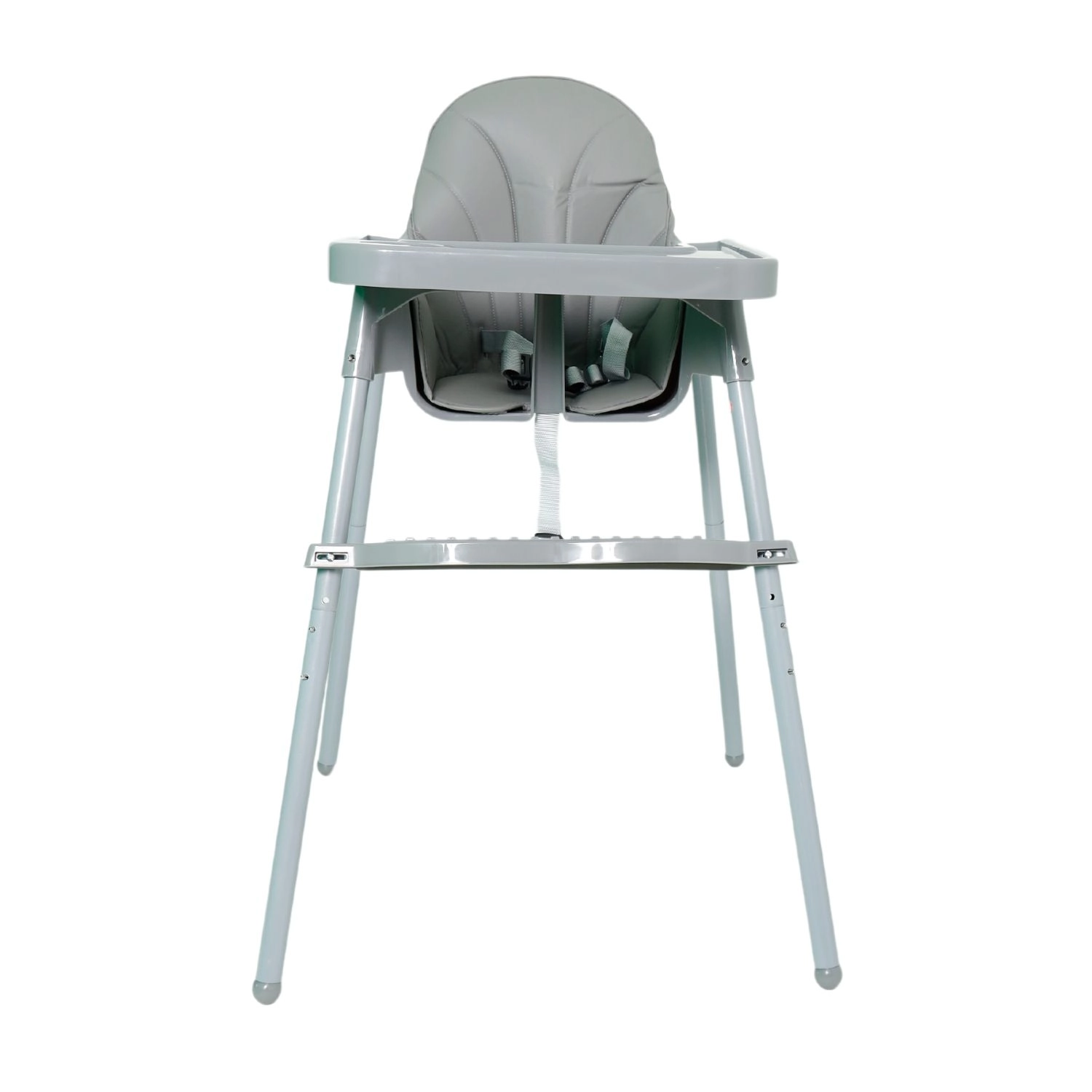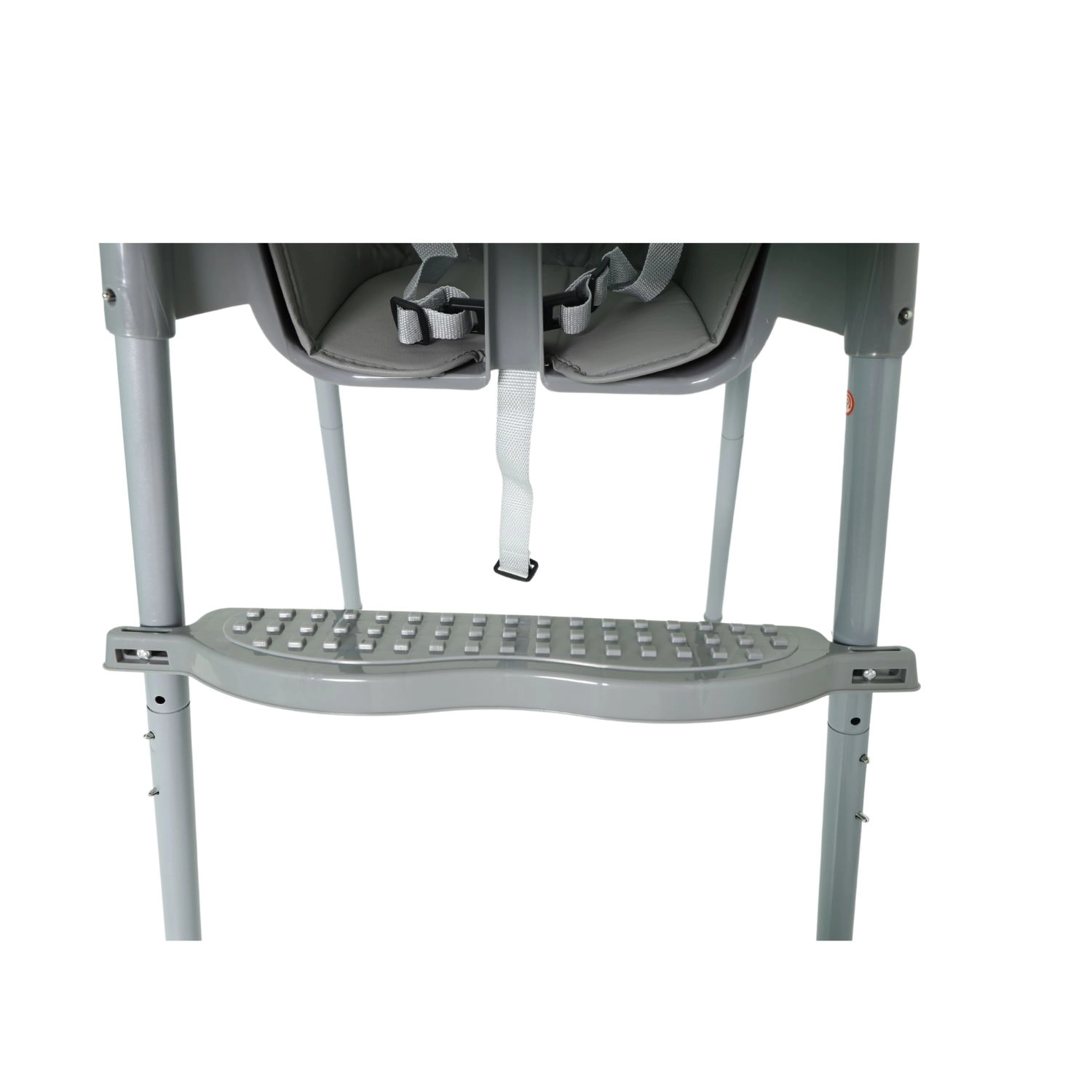 Širok razmak nogu približno 46 × 46 cm i čvrste cijevaste noge pružaju pouzdanu stabilnost. Višetočkovni sigurnosni pojasevi drže dijete na sigurnom tijekom jela i igre.