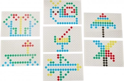 U kompletu je 7 kartica s predlošcima koje djeci pomažu stvarati slike korak po korak te ujedno potiču prepoznavanje boja i uzoraka.