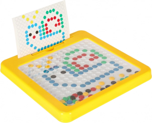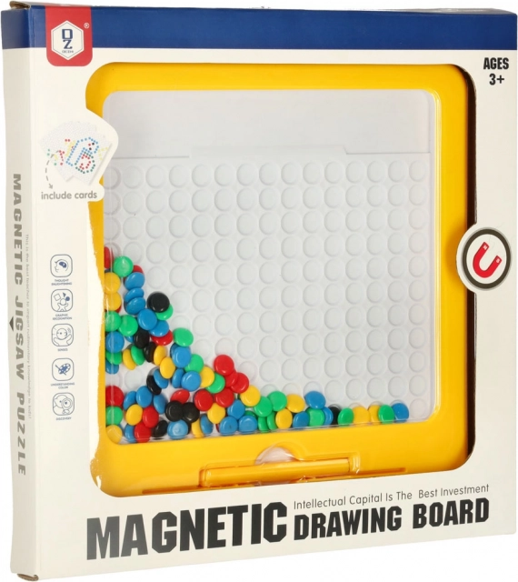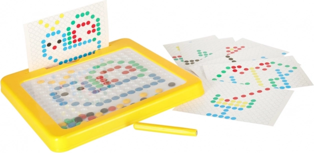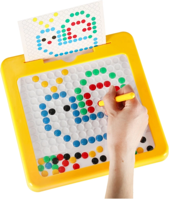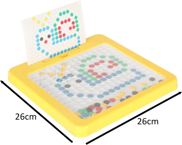 Magnetska ploča za crtanje s mozaikom izvrsno je didaktičko pomagalo inspirirano Montessori principima. Djeca pomoću magnetske olovke privlače i pomiču obojene “gumbe” u ploči te od njih slažu jednostavne i složenije motive. U kompletu su i kartice s predlošcima koje olakšavaju početke i daju inspiraciju.