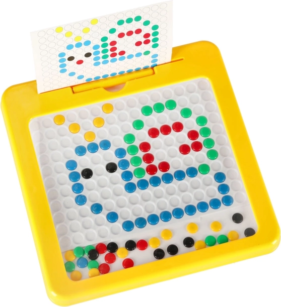 Stabilan plastični okvir u živopisnoj žutoj boji i kompaktne dimenzije osiguravaju praktičnu uporabu kod kuće i na putu. Mozaik prirodno razvija kreativnost, finu motoriku, logičko razmišljanje i vizualnu percepciju. Zajedničko stvaranje ujedno je odlična aktivnost za obiteljske trenutke.