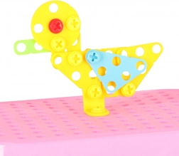 Lagan ružičasti kofer s ventilacijskim otvorima i ručkom drži sve dijelove na okupu i služi kao radna baza za zavrtanje.
