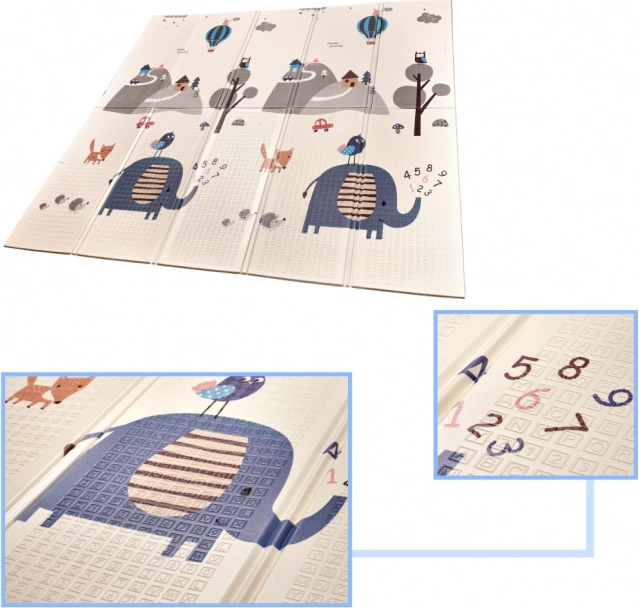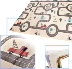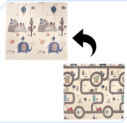 Praktična dječja podloga za igru od XPE pjene je obostrana, sklopiva i nudi prostrano i mekano mjesto za igru i prve korake. Jedna strana prikazuje šumske životinje i brežuljke, a druga ceste i grad za vožnju autićima. Jednostavno se čisti, izolira od hladnoće i zahvaljujući debljini od 1 cm povećava udobnost i sigurnost.