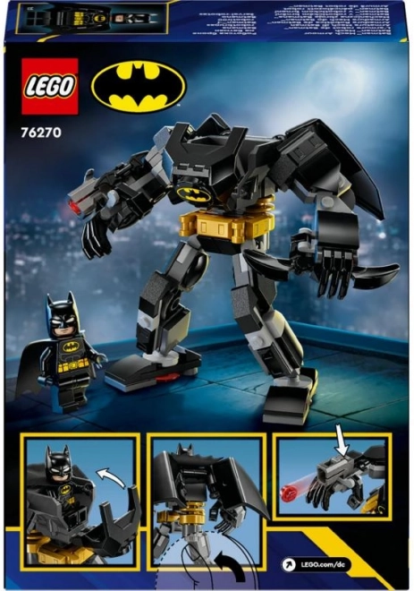 U ovom setu djeca mogu posjesti LEGO minifiguru Batmana u otvarajući kokpit mecha. Mech drži građevinski batarang i ima bacač pločica na ramenu. Na leđima se nalazi raketni ruksak prekriven platnenim plaštom koji se može namještati u različite položaje. Minifigura nosi platneni plašt i drži drugi batarang koji se može pohraniti na desno rame mecha. Pokretne noge, ruke i šake mecha omogućuju obožavateljima Batmana i superjunaka beskrajne dvoboje. Djeca također mogu proširiti svoje mogućnosti igre kada ovu igračku povežu s drugim LEGO mechovima iz serije (prodaju se zasebno). Aplikacija LEGO Builder nudi dodatnu digitalnu zabavu uz mogućnost zumiranja i okretanja modela u 3D-u te praćenja napretka.
