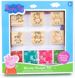 Drveni set pečata Peppa Pig odličan je izbor za djecu koja vole stvarati. S motivima omiljenih likova poput Peppe i njezinih prijatelja djeci omogućuje izradu veselih i šarenih otisaka na papir ili druge materijale.