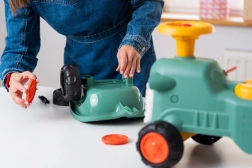 Traktorić je dizajniran tako da pruža maksimalnu stabilnost i sigurnost za vašu djecu. Izrađen od izdržljive plastike s kvalitetnim kotačima.