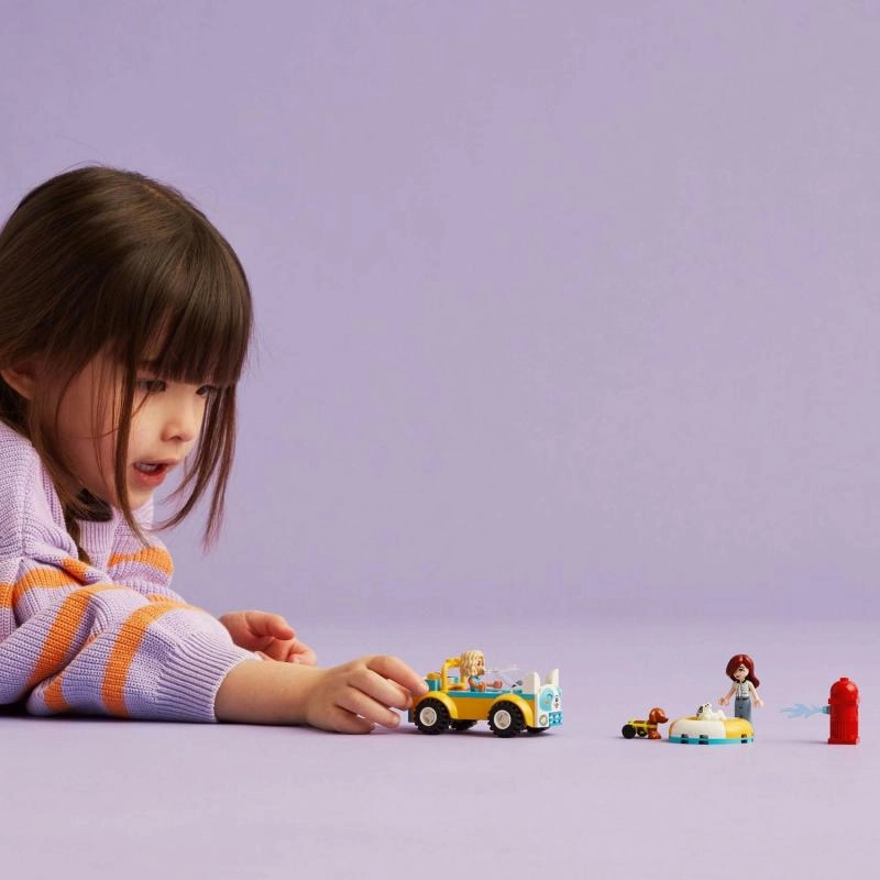 Otkrijte zabavu s setom LEGO Friends auto za njegu pasa, idealnim za djecu od 4 godine. Dvije minilutke, dva preslatka šteneta i sklopivo vozilo s bazenčićem donose sate kreativne igre. Ne nedostaju četke, šampon i hidrant za savršenu njegu pasa te jednostavna izgradnja zahvaljujući Početničkoj kocki i aplikaciji LEGO Builder.