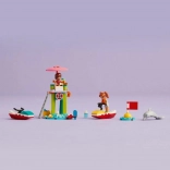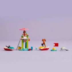 S LEGO Friends plažnim vodenim skuterom Leo postaje spasilac i promatra ocean pomoću dalekozora. Ovaj prekrasan vidikovac također je savršen za promatranje dupina. Leu se pridružuje prijateljica Candi i zajedno se utrkuju na vodenim skuterima. Djeci će se svidjeti detalji poput raka koji voli čeprkati po hladnjaku i tražiti sladoled!