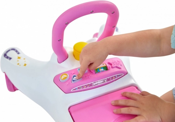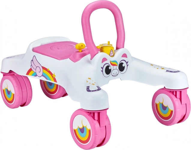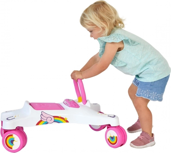 Preslatka guralica s motivom jednoroga odličan je suputnik za svakodnevnu igru i vježbu stabilnosti. Zahvaljujući okretnim kotačićima 360° lako se okreće na mjestu, a dijete s njom glatko prolazi i užim prostorima. Robusna plastična konstrukcija pruža oslonac i sigurnost, dok sirena vožnji dodaje zabavu.