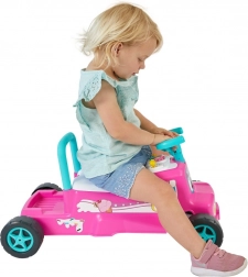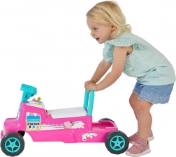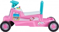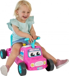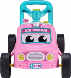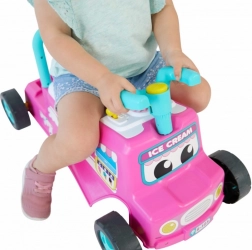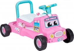 Ružičasta guralica u izgledu malog kombija za sladoled donosi djeci puno zabave i poticaja za igru trgovca sladoledom. Zahvaljujući čvrstom sjedalu, volanu s trubom i stražnjem naslonu pomaže razvijati koordinaciju, sigurnost kretanja i maštu.