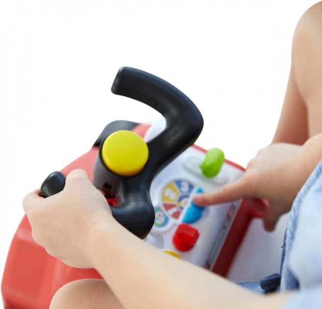 Volan s trubom i šarenim upravljačkim elementima potiče maštovitu igru i finu motoriku. Stražnja ručka služi manjim mališanima kao oslonac pri učenju hodanja, dok će stariji uživati u vožnji odgurivanjem nožicama.