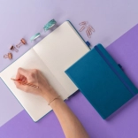 Otkrijte savršeni spoj klasike i elegancije s našom plavom točkastom bilježnicom. Ova bilježnica dimenzija 15 x 21 cm dizajnirana je s naglaskom na praktičnost, ali i stil. Površina je izrađena tako da omogućuje lako utiskivanje logotipa, što je čini idealnim izborom za profesionalnu i osobnu upotrebu.
