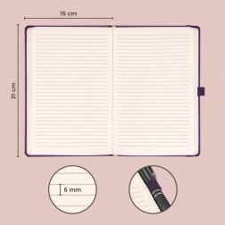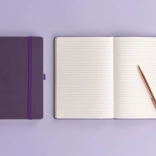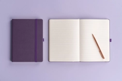 Linijski notes Aprint Neo u ljubičastoj boji nudi kombinaciju klasike i elegancije. Njegova površina nije samo najtraženija, već omogućuje i jednostavno utiskivanje poslovnih logotipa s finom teksturom.