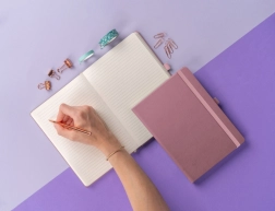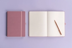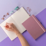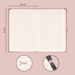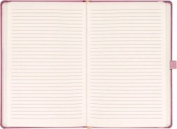 Ova bilježnica u ružičastoj izvedbi spaja klasiku i eleganciju, što je čini izvrsnim izborom za svaku priliku. Njena površinska tekstura omogućuje jednostavno utiskivanje logotipa. Dimenzije 15 x 21 cm pružaju dovoljno prostora za vaše misli i planove.