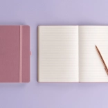 Elegantna ružičasta bilježnica Neo s liniranim stranicama, idealna za korporativni branding i osobne bilješke.