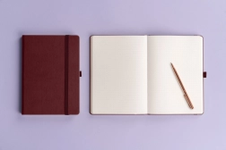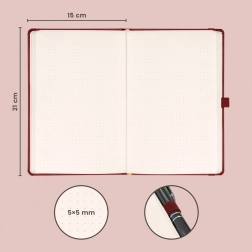 Ovaj točkasti notes odlikuje se profinjenim burgundskim dizajnom koji pristaje svakodnevnim zabilješkama i kao stilski dodatak na radnom stolu.