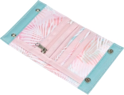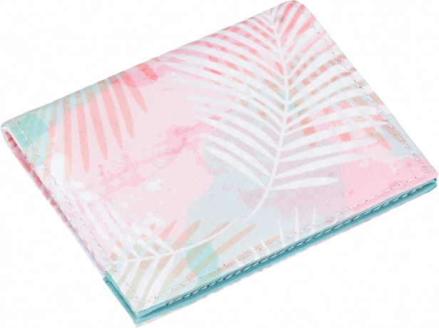 Dizajn s pastelnim palminim lišćem daje novčaniku svjež izgled i lako se usklađuje s ruksakom ili torbicom. Kompaktne dimenzije lako stanu u džep, a mali džep na patentni zatvarač za sitniš olakšava brzu uplatu i organizaciju kovanica.