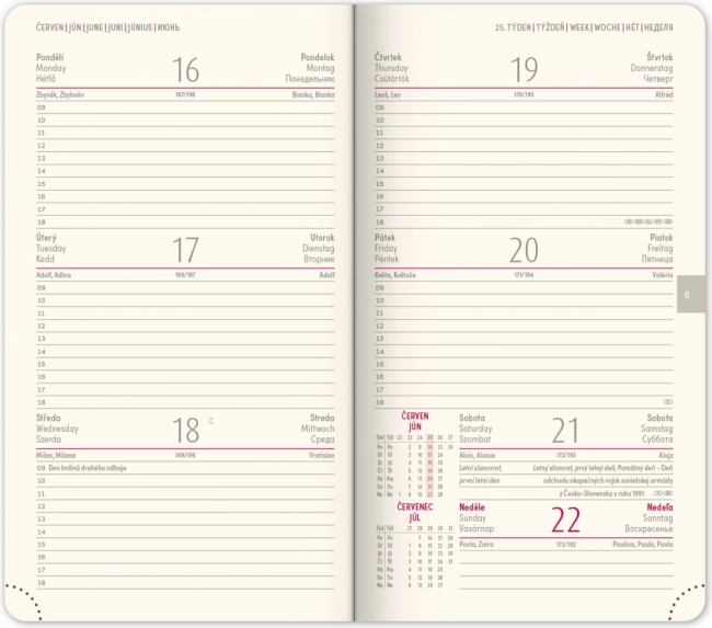 Ovaj stilski i praktični džepni rokovnik Twill 2025 idealan je pratitelj za učinkovito planiranje i organizaciju vašeg vremena. Sadrži: