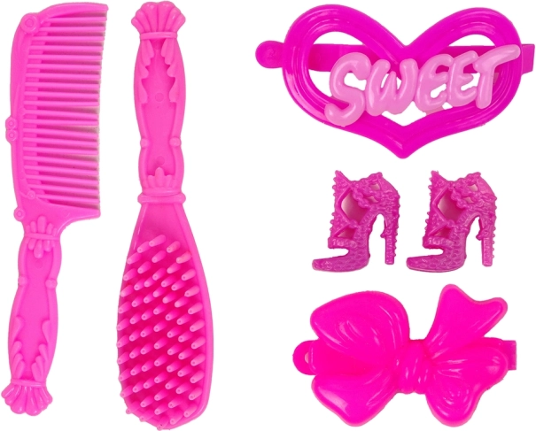 Set uključuje ružičasti češalj, četku i druge dodatke za stiliziranje koji podržavaju brigu i kreativnost pri igri.