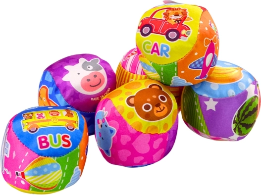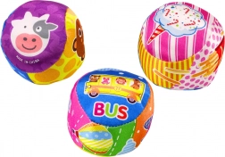 Meki loptic ukrašen šarenim uzorcima koji prikazuju životinje i voće potiče dječju maštu i privlači pozornost zahvaljujući intenzivnim, živim bojama. Siguran i mekan materijal osigurava da je idealan za nježne dječje ručice, a njegova lagana konstrukcija olakšava držanje, kotrljanje i bacanje.