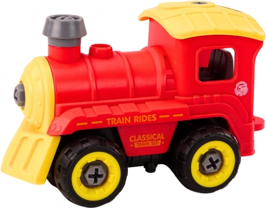 Ova crveno‑žuta rasklopiva lokomotiva pretvara igru u kreativnu radionicu – djeca sama sastave stroj pomoću odvijača, a zatim ga mogu voziti bušilicom koja funkcionira kao daljinski upravljač. Realistični zvukovi vlaka i motora pojačavaju doživljaj vožnje i potiču maštu.