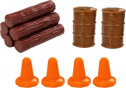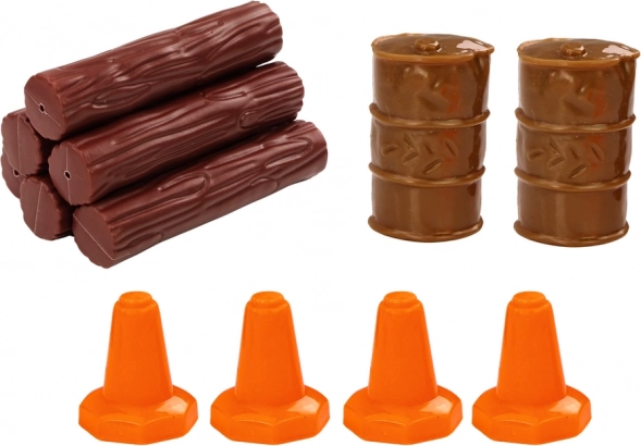 - 4 prometna čunja, 2 bačve, drveni trupci