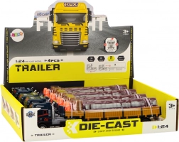 Detaljno izrađen model kamiona s prikolicom u mjerilu 1:24 donosi djeci realističnu igru logistike i prijevoza. Plava kabina i smeđa prikolica s uklonjivim bočnim stranicama omogućuju lako utovarivanje i istovarivanje. Pritiskom na kabinu aktiviraju se svjetla i zvukovi – pokretanje motora i signal pri vožnji unatrag – koji pojačavaju autentičan doživljaj.
