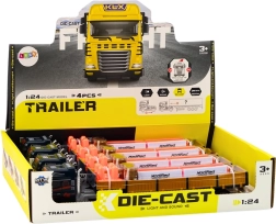 Ovaj plavi kamionski set s prikolicom u mjerilu 1:24 vjerno oponaša pravi TIR kamion. Prikolica ima otvarajuća bočna vrata za jednostavan „utovar i istovar“, a na platformi se nalaze dvije bačve kao teret. Model je opremljen svjetlima i zvukovima pokretanja motora i vožnje unatrag, što povećava autentičnost igre.