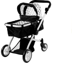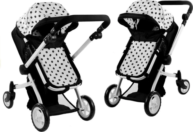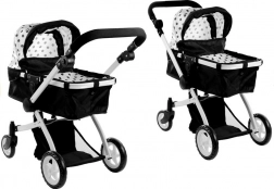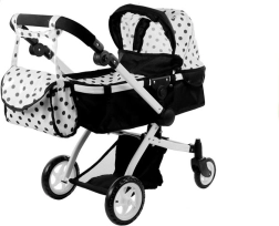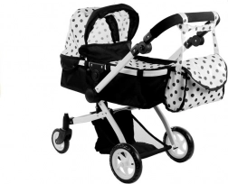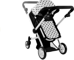 Kolica za lutke Alice 2u1 duboka i sportska, crno‑bijeli točkasti uzorak