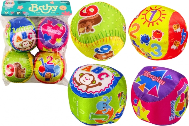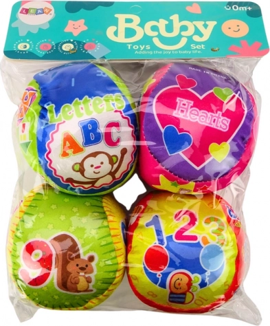 Set od 4 meke loptice za djecu je edukativna i interaktivna igračka koja spaja učenje i zabavu. Svaka loptica u setu ima jedinstvene motive koji potiču učenje kroz igru. Šarene ilustracije životinja i brojeva pomažu djeci učiti brojati i prepoznavati razne životinje. Loptica s ilustracijama osnovnih geometrijskih oblika, od kojih je svaki označen na engleskom jeziku, uvodi djecu u svijet jezika i geometrije. Slova abecede ukrašena slikama životinja omogućuju djeci da na zabavan način lako nauče slova i njihove glasove.