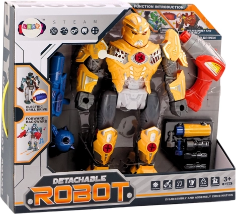 Zabavan i edukativan konstrukcijski set vijčanog robota u jarko žutoj boji razvija finu motoriku i logičko razmišljanje. Djeca mogu robota sama rastavljati i sastavljati pomoću dječje bušilice i odvijača, mijenjati nastavke i igrati se malog inženjera. Nakon sastavljanja može se uključiti baterijski pogon i robot će se početi kretati, a doživljaj je upotpunjen svjetlosnim i zvučnim efektima. Ne nedostaje ni fantazijska oprema (plavo oružje i buzdovan) koja potiče kreativnu igru i napete misije.