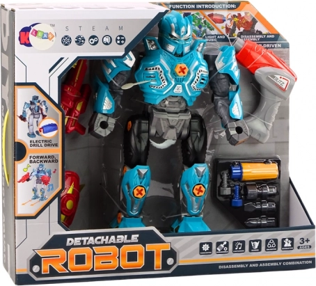 Zabavan i edukativan vijčani robot u tirkiznoj boji razvija finu motoriku i logičko razmišljanje. U pakiranju se nalaze dječja bušilica, odvijač i izmjenjivi nastavci za montažu i demontažu robota. Nakon sastavljanja može se baterija iz bušilice koristiti kao pogon, pa se robot doista kreće. Za još veći doživljaj tu su svjetlosni i zvučni efekti, kao i štit i “oružje” za akcijsku igru. Idealno za djecu od 3 godine, izrađeno od izdržljive plastike, s certifikatima CE i EN71.