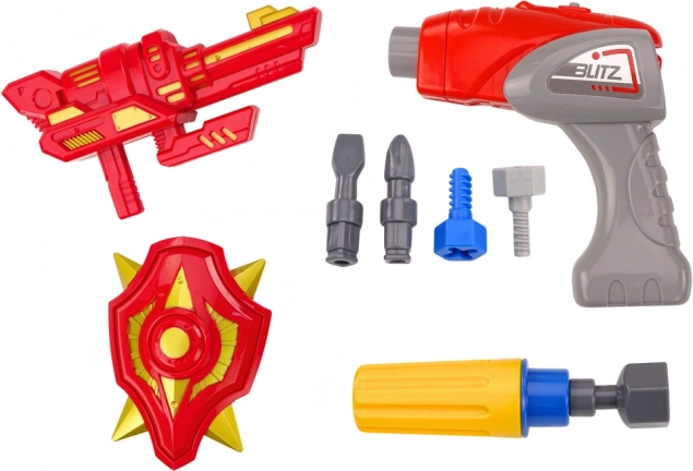 - Robot, dječja bušilica, odvijač, 3× izmjenjivi nastavak, štit i dodaci