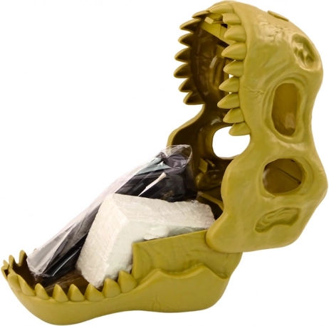 Cijeli set smješten je u plastičnoj dinosaurusovoj lubanji koja ima dvostruku funkciju: praktičan spremnik i stilsku dekoraciju, idealnu za dječju sobu malog ljubitelja dinosaura. Zahvaljujući tome, set pruža ne samo dugotrajnu zabavu, već i atraktivan dekorativni element.