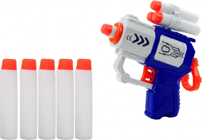 Set također uključuje pet mekanih strijela koje su sigurne i ne predstavljaju opasnost za djecu. Strijele su lagane i elastične, što osigurava precizno gađanje i minimalizira rizik od oštećenja u domu. Pištolj je dizajniran tako da se strijele lako pune i ispaljuju, omogućujući neprekinutu i glatku igru.