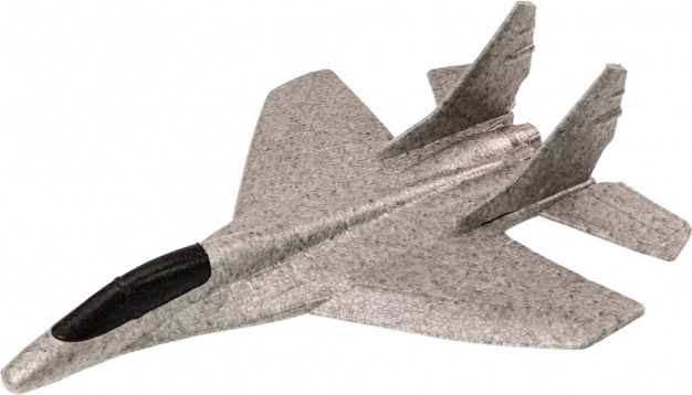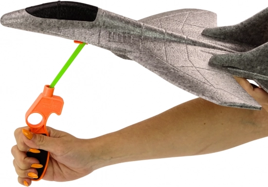 Stiroporna lovačka opremljena je izbacivačem s gumom, koji dodaje zabavu i uzbuđenje. Dovoljno je pričvrstiti gumu na stražnji dio aviona i laganim trzajem lansirati ga u zrak, gdje će poletjeti prema oblacima.