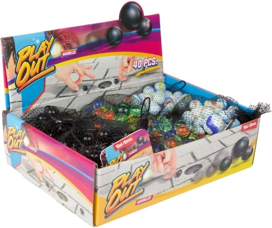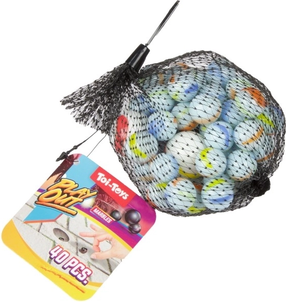 Uživajte u satima zabave s ovim setom staklenih kuglica različitih boja u mrežici, idealnim za klasično cvrkanje i razvoj koordinacije ruka-oko kod djece od tri godine.