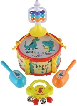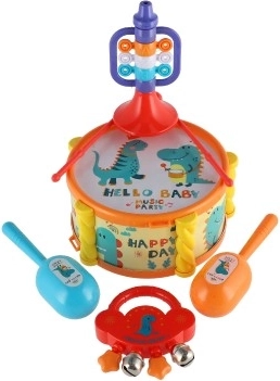 Dječji glazbeni set donosi razigran način kako maloj djeci približiti osnove glazbe i ritma. Svaki instrument u setu je šareno atraktivan i jednostavan za korištenje, što pomaže razviti ne samo glazbene sposobnosti nego i finu motoriku.